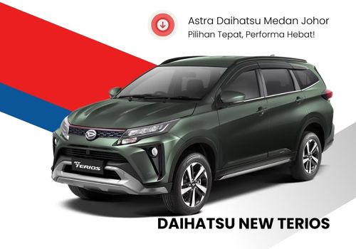 SUV Keluarga 7-Seater yang Siap Bertualang Daihatsu New Terios hadir sebagai SUV 7-seater dengan desain gagah dan fitur lengkap. Dilengkapi mesin 1.5L Dual VVT-i yang tangguh serta fitur keselamatan canggih seperti VSC, HSA, dan kamera 360°.